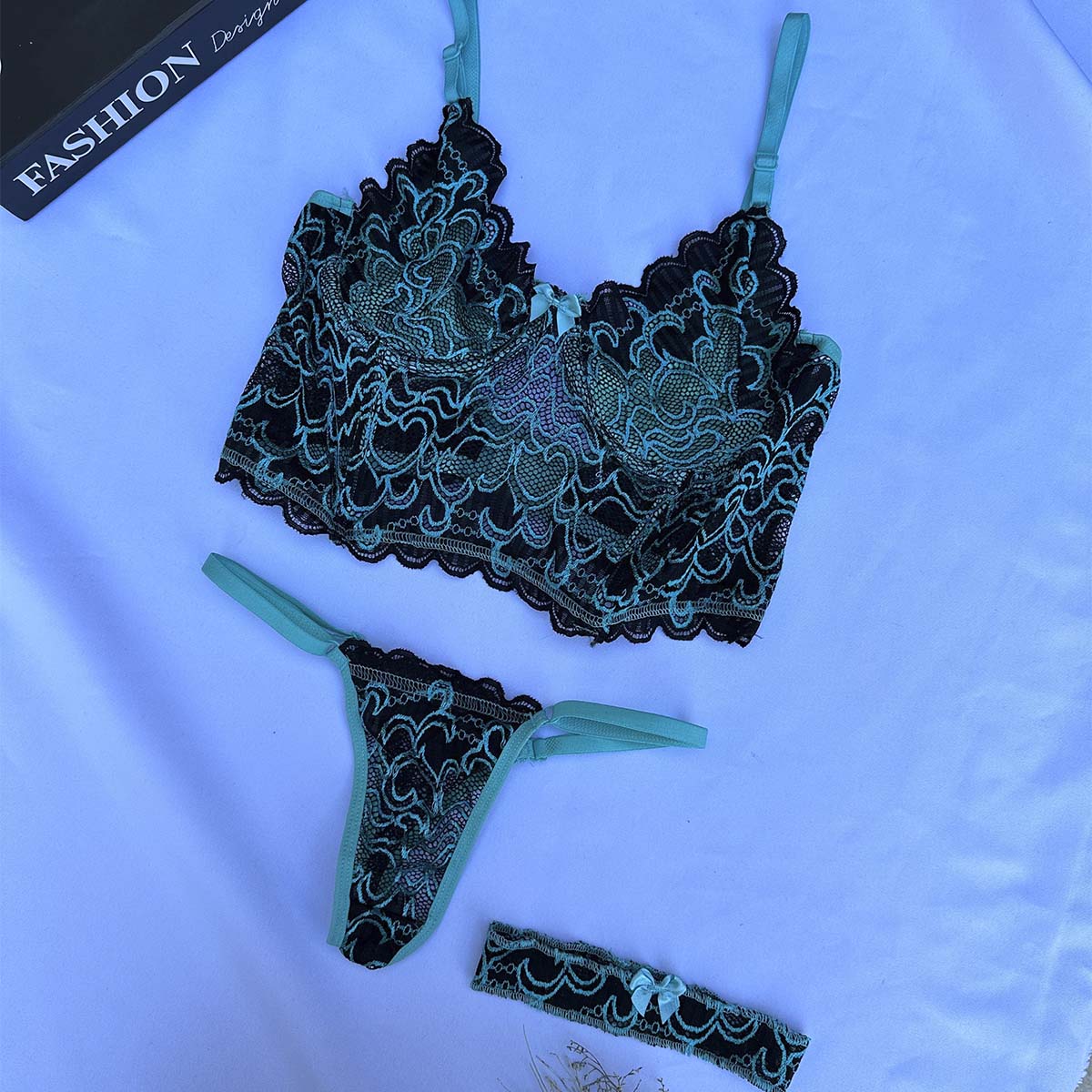 Conjunto Sensual Cropped Renda Meia Taça Bicolor Bella