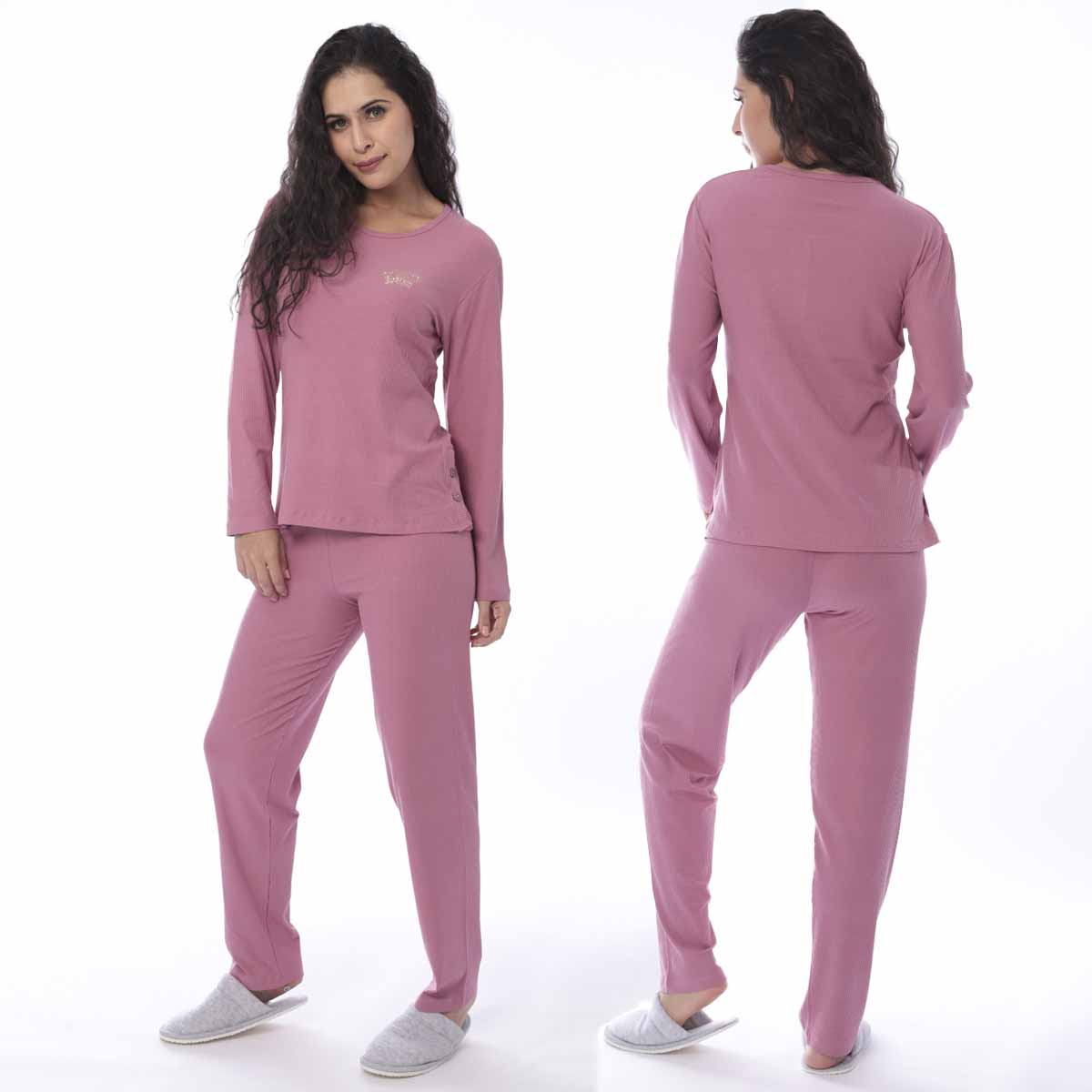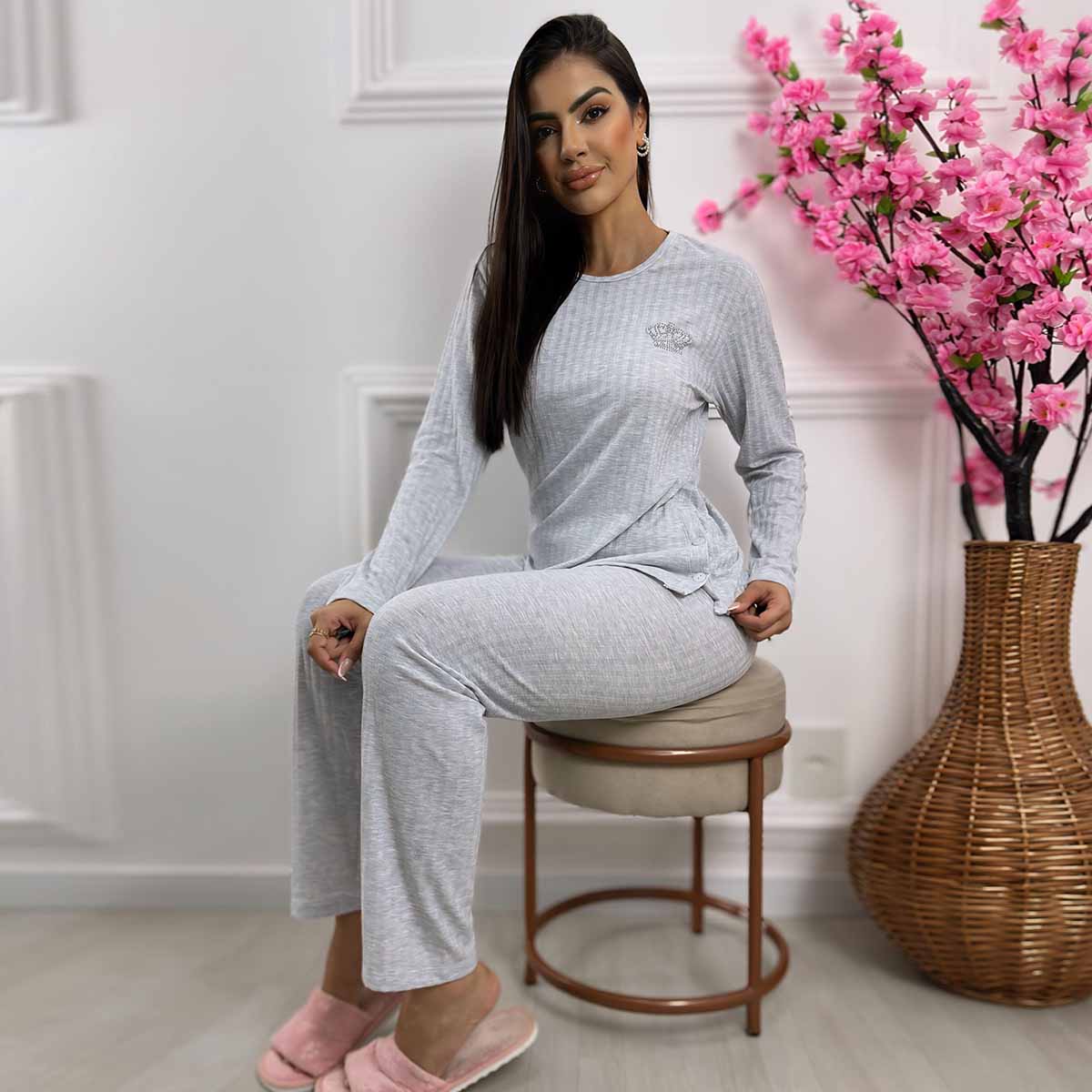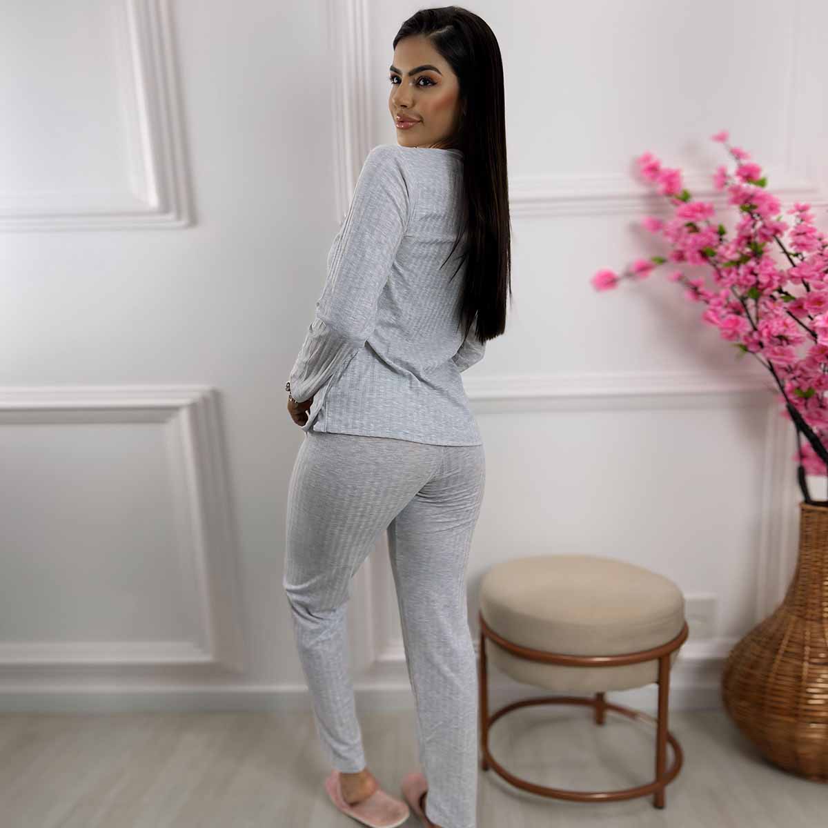 Pijama Feminino Confeccionado no Tecido Canelado